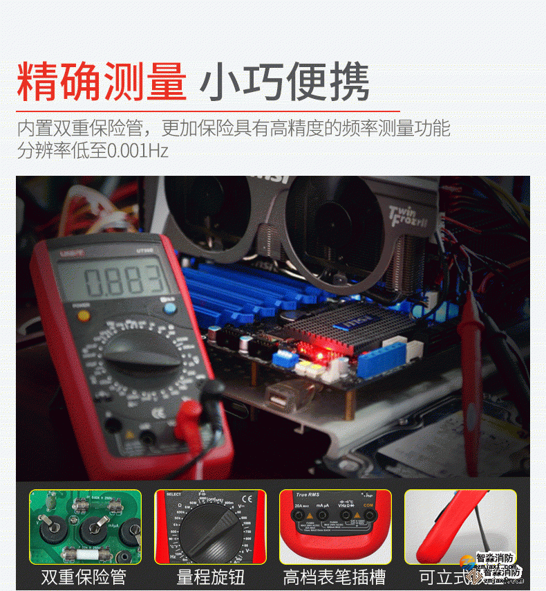 UT890系列全新一代手動量程數字萬用表。自動量程100mF大電容檔位,可快速測量音響功放,電源板等領域mF等級的大電容。該系列萬用表具有真有效值,可準確進行非正常交流信號的有效測量;全量程保護,萬用表在電阻檔測試時不會由于誤操作接入高壓而引起燒表。在電子,家電,電器維修工作中,您需要一款耐用、可靠且精確的數字萬用表。